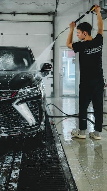 The Simpson 3000 PSI Pressure Washer is built with essential components designed for durability and performance. The engine powers the unit, while the pump generates high pressure. The high-pressure hose connects the pump to the spray wand, which includes interchangeable nozzles for various cleaning tasks. The frame provides stability and portability, with wheels for easy movement; Understanding these basic elements is crucial for proper operation and maintenance. Each part works together to deliver 3000 PSI of cleaning power, making it suitable for heavy-duty tasks. Familiarizing yourself with these components ensures you can identify and address any issues quickly. This section provides a clear breakdown of the fundamental parts of the pressure washer.