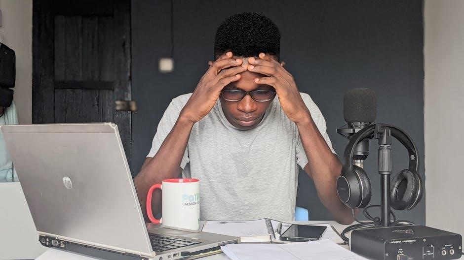 Identify common issues with your Simpson 3000 PSI pressure washer by observing its performance. Low pressure, engine stalling, or leaks are frequent concerns. Start by checking the fuel level and oil to ensure proper engine function. Inspect the high-pressure hose and connections for damage or blockages. Clean or replace clogged nozzles, as they often cause low pressure. For leaks, tighten loose fittings or replace worn seals. If the engine doesn’t start, verify the choke position and fuel quality. Always refer to the troubleshooting guide in the manual for specific solutions. Regular maintenance can prevent many of these issues. Addressing problems early ensures optimal performance and longevity.